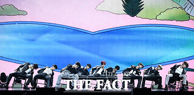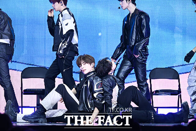 [더팩트ㅣ서예원 기자] 그룹 제로베이스원이 1일 오후 서울 용산구 블루스퀘어 SOL 트래블홀에서 열린 첫 정규 1집 'NEVER SAY NEVER(네버 세이 네버)' 발매 기념 쇼케이스에 참석해 수록곡 'Lovesick Game(러브식 게임)' 무대를 펼치고 있다.