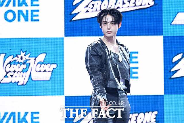 [더팩트ㅣ서예원 기자] 그룹 제로베이스원의 김규빈과 김지웅, 석매튜, 한유진, 장하오, 성한빈, 김태래, 리키, 박건욱(왼쪽부터)이 1일 오후 서울 용산구 블루스퀘어 SOL 트래블홀에서 열린 첫 정규 1집 'NEVER SAY NEVER(네버 세이 네버)' 발매 기념 쇼케이스에 참석해 포즈를 취하고 있다.