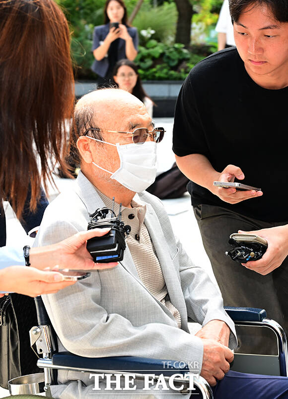 [더팩트ㅣ임영무 기자] 반클리프 아펠 목걸이 인사청탁을 자수한 이봉관 서희건설 회장이 2일 오전 서울 종로구 KT광화문빌딩 웨스트에 마련된 김건희특검 사무실로 출석하고 있다.