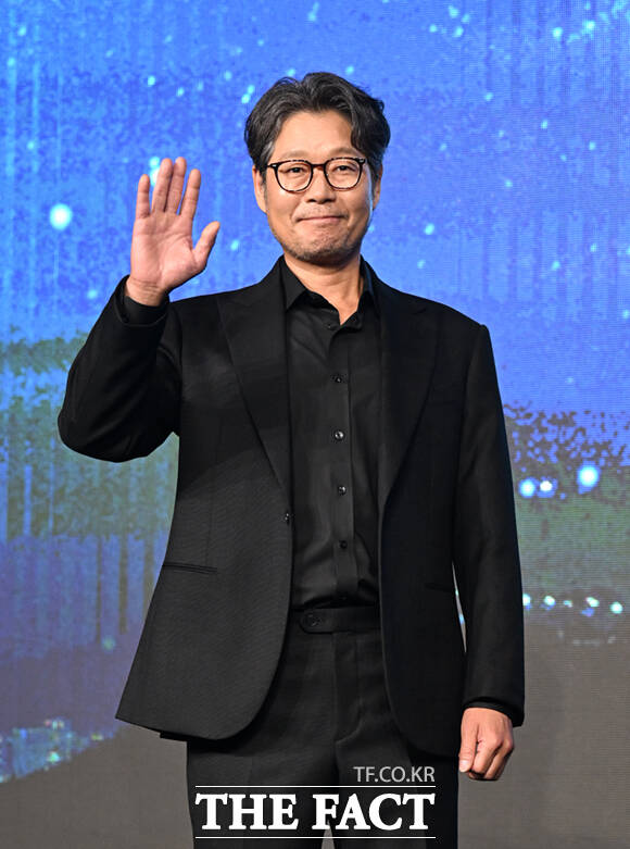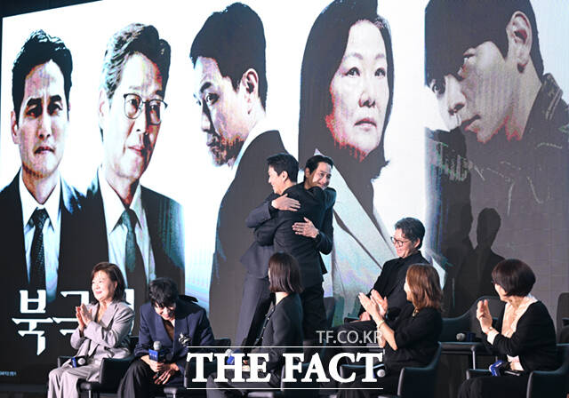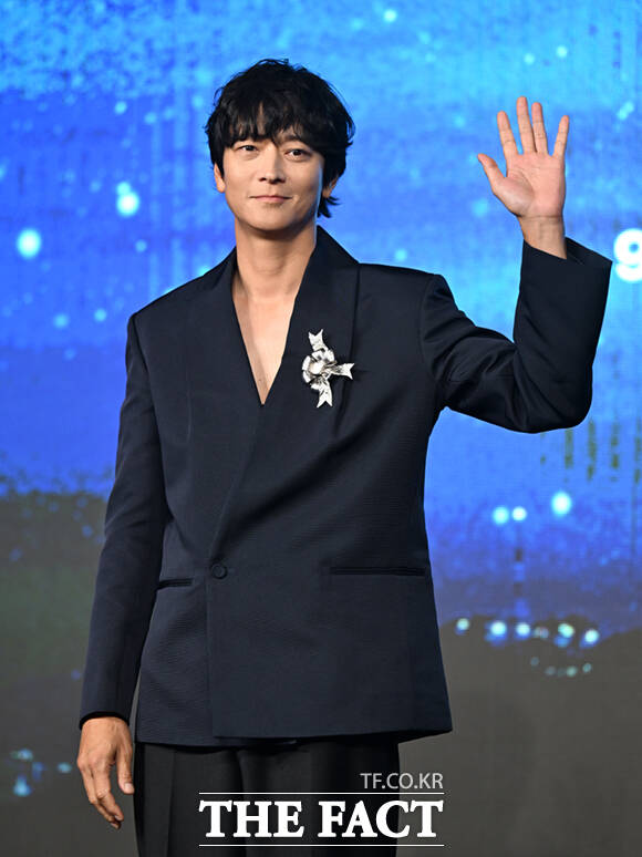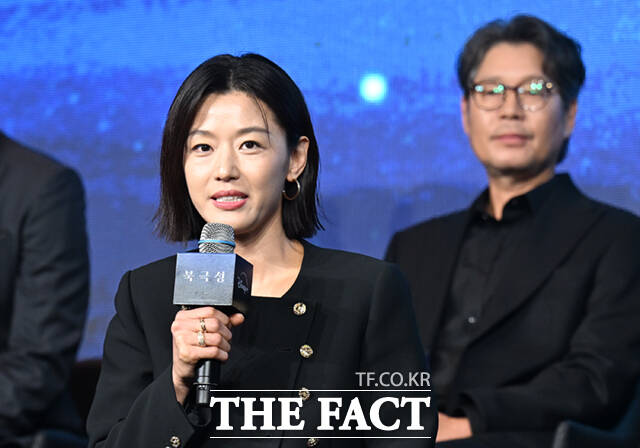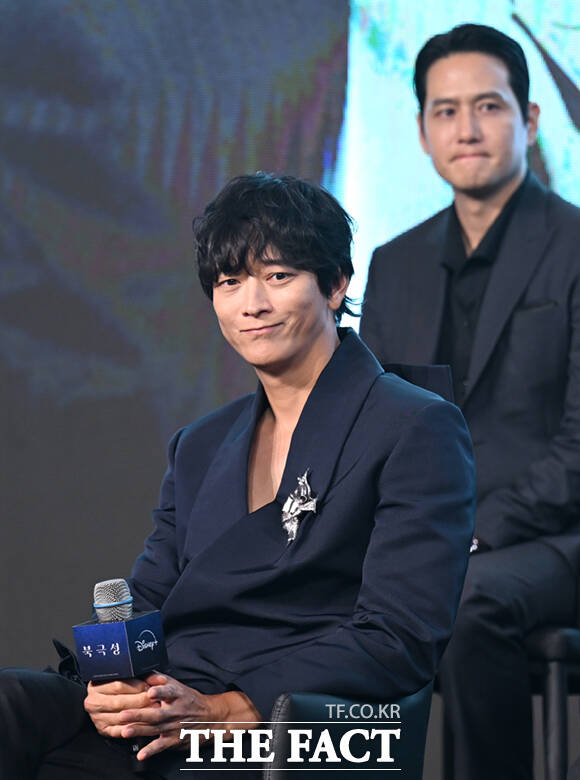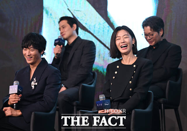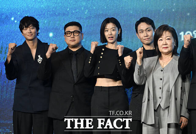 [더팩트ㅣ이새롬 기자] 배우 강동원과 전지현, 오정세, 유재명, 박해준, 주종혁, 허명행·김희원 감독, 이상희, 이미숙, 김해숙(왼쪽부터 시계방향)이 2일 서울 광화문 포시즌스 호텔 서울에서 열린 디즈니+ 새 오리지널 시리즈 '북극성'의 제작발표회에 참석해 포즈를 취하고 있다.
