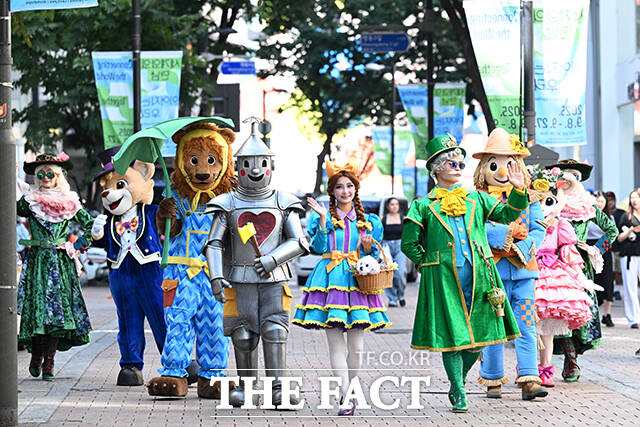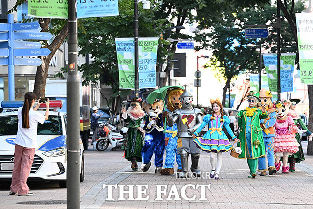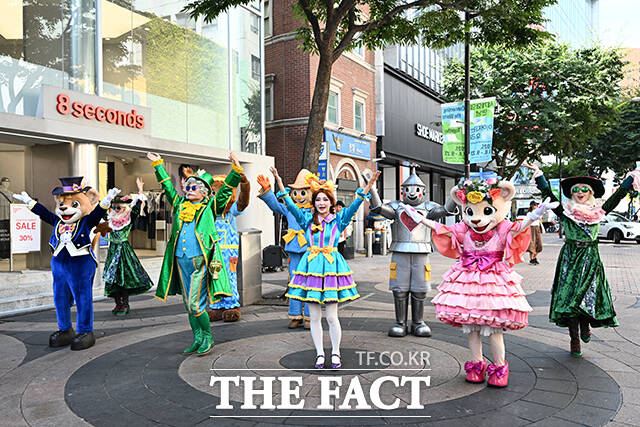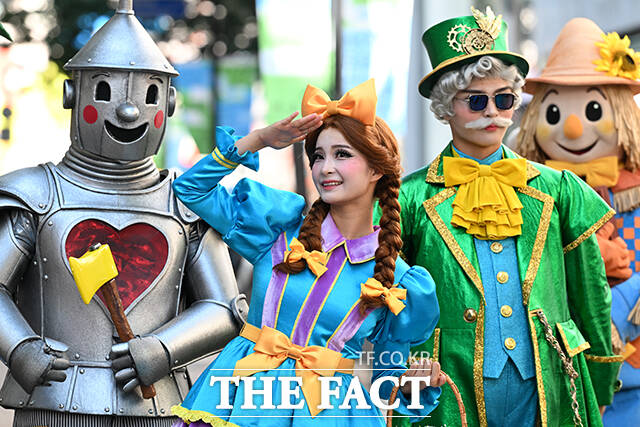 [더팩트ㅣ서예원 기자] 에버랜드 가을축제 개막을 이틀 앞둔 3일 오전 서울 중구 명동거리에서 '오즈의 마법사' 캐릭터들이 퍼레이드 공연을 선보인 뒤 관광객과 기념 촬영을 하고 있다.