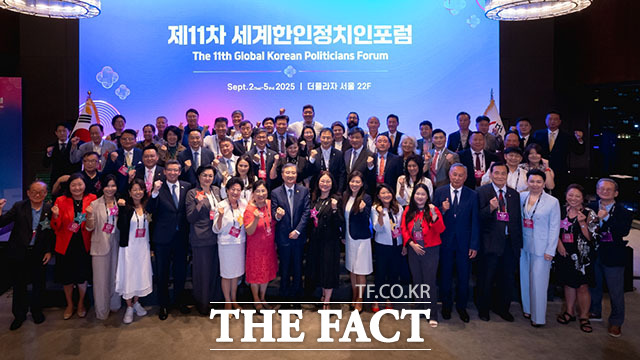 [더팩트ㅣ이효균 기자] '제 11차 세계한인정치인포럼'이 2일 서울 중구 소공동 더플라자호텔에서 전 세계 10개국 51명의 한인 정치인이 참석한 가운데 참가자들이 단체 사진을 찍고 있다.
