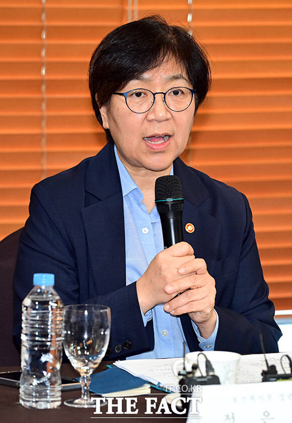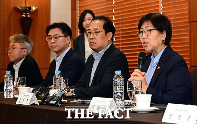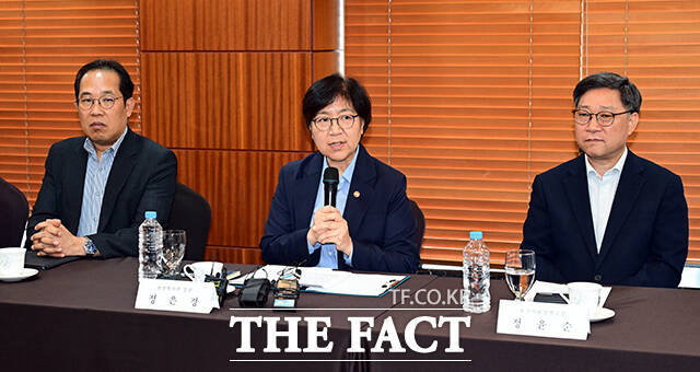 [더팩트ㅣ임영무 기자] 정은경 보건복지부 장관이 3일 오후 서울 중구 코리아나호텔에서 열린 6개 보건의약단체장 간담회에 참석해 모두발언을 하고 있다.