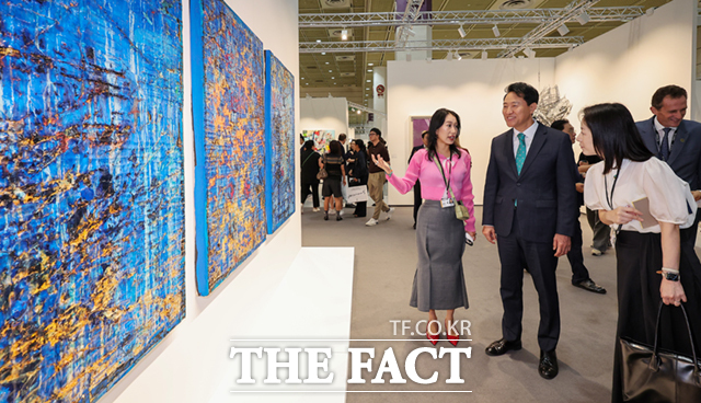 [더팩트ㅣ이새롬 기자] 오세훈 서울시장이 3일 서울 강남구 코엑스에서 열린 '프리즈 서울 2025' VIP 프리뷰 데이를 찾아 작품들을 관람하고 있다.