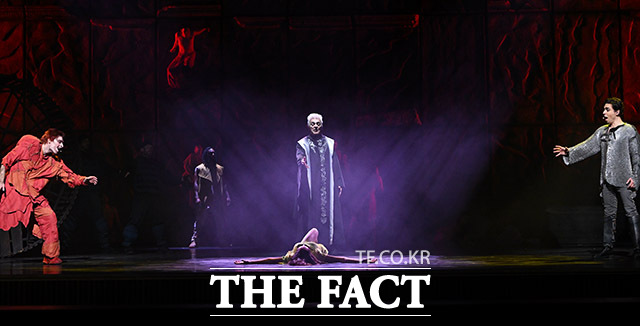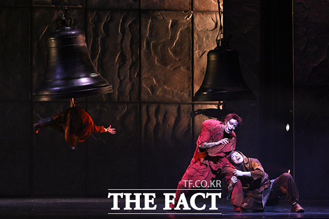 [더팩트ㅣ남용희 기자] 뮤지컬 '노트르담 드 파리' 프레스콜이 3일 오후 서울 종로구 세종문화회관 대극장에서 열린 가운데 배우들이 하이라이트 장면을 시연하고 있다.