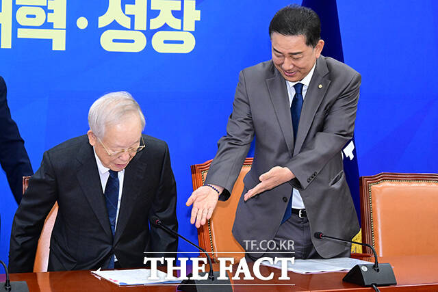 [더팩트ㅣ국회=남윤호 기자] 김병기 더불어민주당 원내대표가 3일 오후 서울 여의도 국회에서 손경식 한국경영자총협회 회장을 비롯한 경제6단체 대표단과 면담을 진행한다.