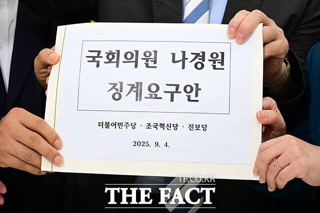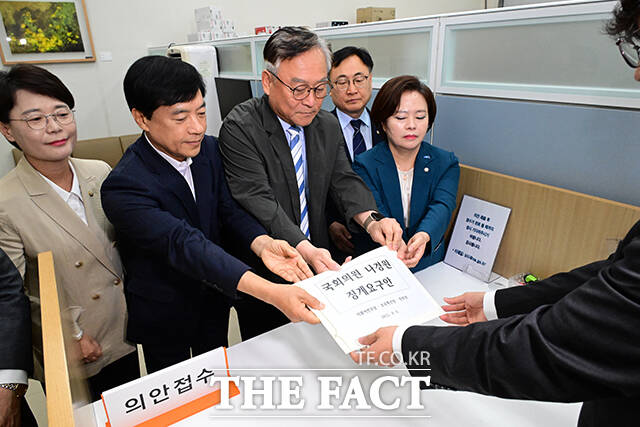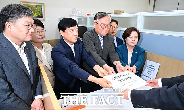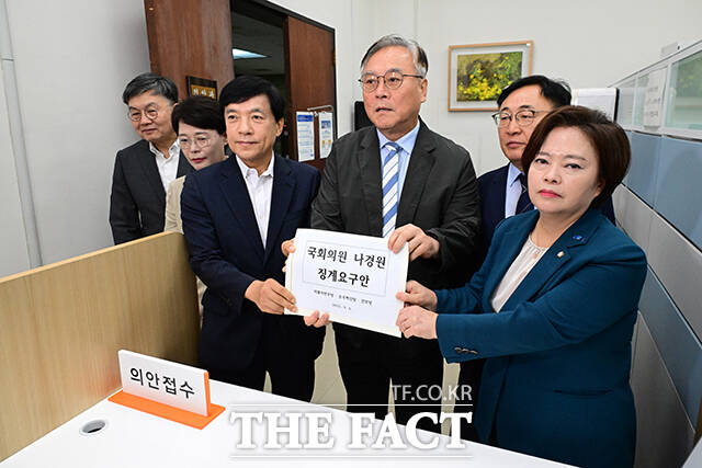 [더팩트ㅣ국회=남윤호 기자] 더불어민주당·조국혁신당·진보당이 공동대표발의한 '국회의원 나경원 징계요구안'이 4일 오전 서울 여의도 국회 의안과에 접수되고 있다.