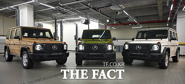 [더팩트ㅣ장윤석 기자] 배우 이동휘와 차범근 전 감독, 추신수 전 야구선수가 4일 오전 서울 서초구 메르세데스-벤츠 방배 서비스센터에서 열린 'G-클래스 스트롱거 댄 더 1980 에디션' 출시 행사에서 포즈를 취하고 있다.