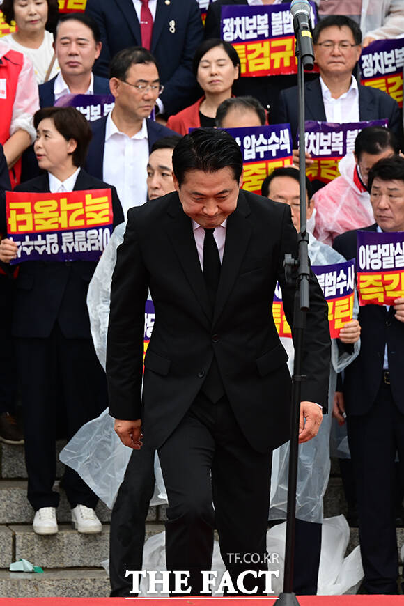 장동혁 대표는 이날 연단에 올라 "오늘 2025년 9월 4일은 쓰레기 같은 내란 정당 프레임을 깨는 날이 될 것"이라며 "무도한 이재명 정권을 무너뜨리는 그 첫날이 될 것"이라고 말했다.