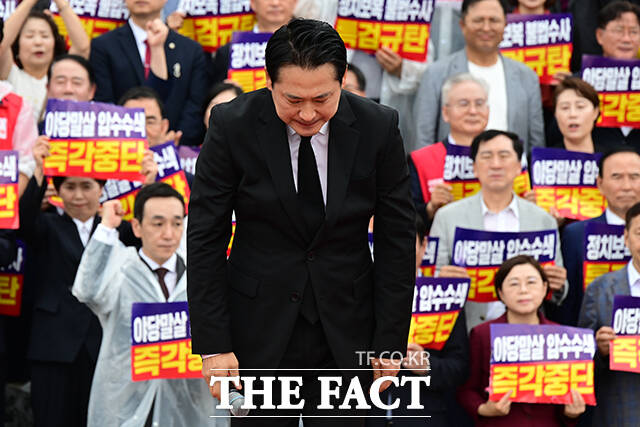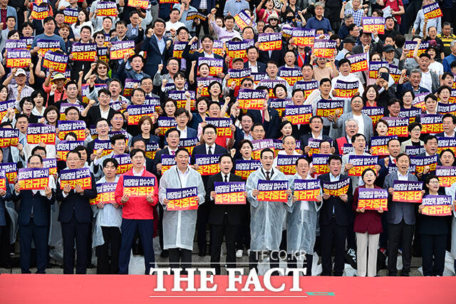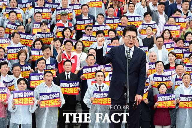 또 "당원 동지 여러분, 애국시민 여러분 우리가 반드시 인민재판부만은 막아내야 한다"고 강조한 장 대표는 "이재명 정권을 무너뜨리기 위해 목숨 걸고 진격하자"고 했다.