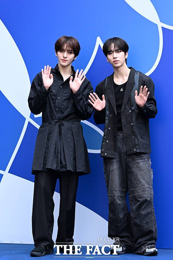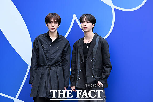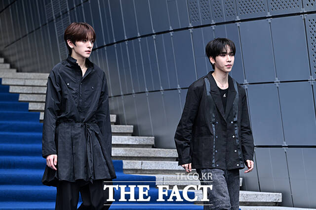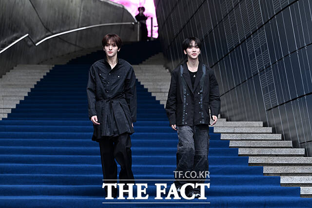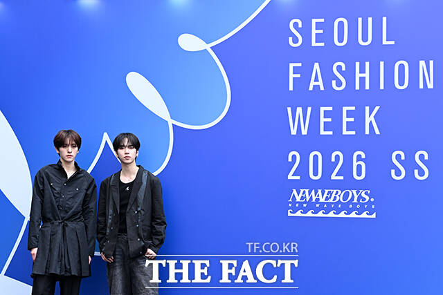 [더팩트ㅣ서예원 기자] 그룹 엔싸인의 로렌스(왼쪽)와 한준이 4일 오후 서울 중구 동대문디자인플라자(DDP)에서 열린 2026 S/S 서울패션위크 뉴웨이브보이즈 포토월에 참석해 포즈를 취하고 있다.