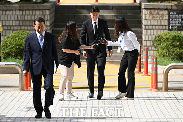 [더팩트ㅣ장윤석 기자] 불법 촬영 혐의를 받는 전 국가대표 축구선수 황의조가 4일 오후 서울 서초구 서울중앙지방법원에서 열린 항소심 선고공판에 출석하고 있다.
