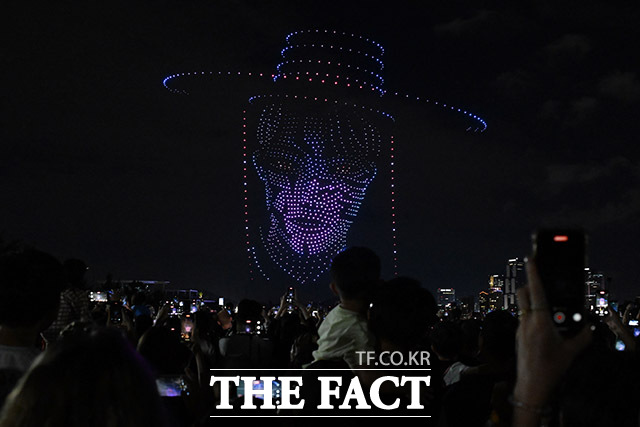 [더팩트ㅣ남용희 기자] '2025 한강 불빛 공연(드론 라이트 쇼)'이 7일 오후 서울 광진구 뚝섬한강공원에서 열린 가운데 1,200여 대의 드론이 넷플릭스 '케이팝 데몬 헌터스(케데헌)'를 주제로 밤하늘을 수놓고 있다.