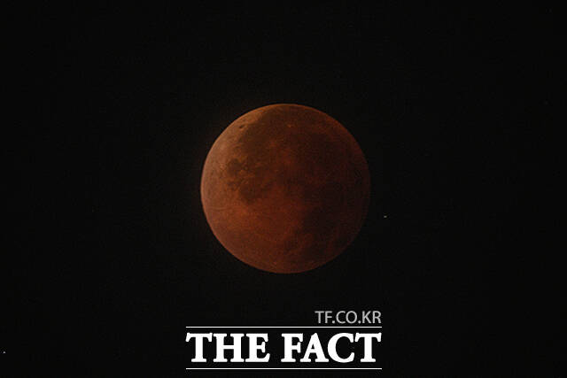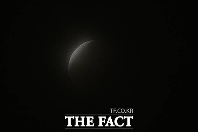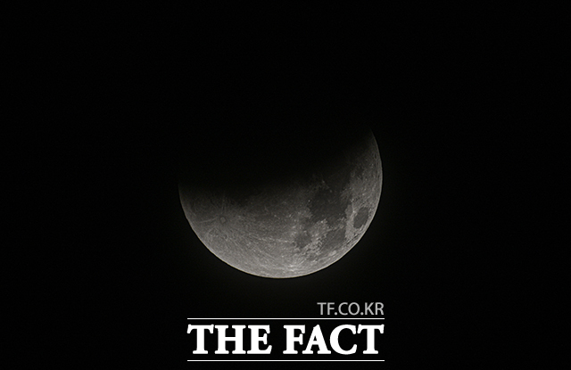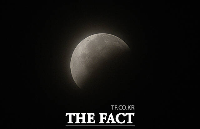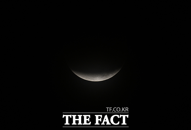 [더팩트ㅣ박헌우 기자] 8일 오전 서울 종로구 북악팔각정에서 올려다본 하늘에서 개기월식이 관측되고 있다.
