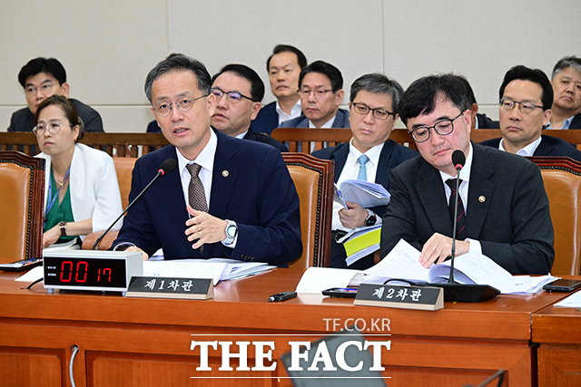 [더팩트ㅣ국회=남윤호 기자] 기획재정부 이형일 1차관(왼쪽), 임기근 2차관이 8일 서울 여의도 국회 기획재정위원회에서 열린 전체회의에 출석해 질의 답변을 하고 있다. ilty012@tf.co.kr 사진영상기획부 photo@tf.co.kr