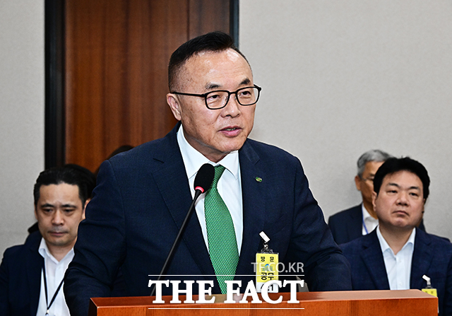 [더팩트ㅣ국회=배정한 기자] 황주호 한국수력원자력 사장이 8일 오전 서울 여의도 국회에서 열린 산업통상자원중소벤처기업위원회 전체회의에 참석해 질의에 답변을 하고 있다.