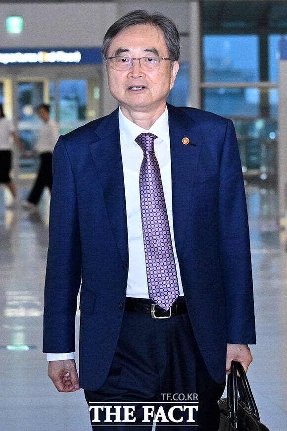 [더팩트ㅣ인천국제공항=남용희 기자] 조현 외교부 장관이 미국 이민 당국의 불법체류 단속으로 구금된 한국인 300여 명의 석방 절차를 마무리하고 유사 사태 재발을 막기 위해 8일 오후 인천국제공항 제2터미널을 통해 미국으로 출국하며 취재진의 질문에 답하고 있다.