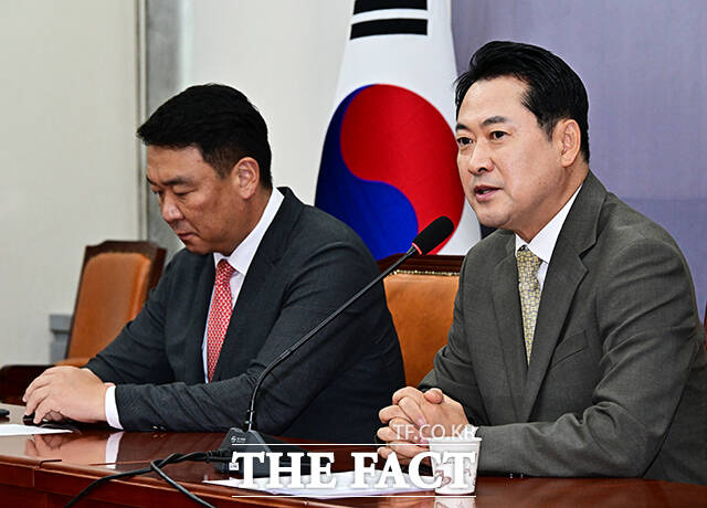 [더팩트ㅣ국회=배정한 기자] 장동혁 국민의힘 대표가 9일 오전 서울 여의도 국회에서 정청래 더불어민주당 대표 교섭단체 연설 관련 입장 발표를 하고 있다.
