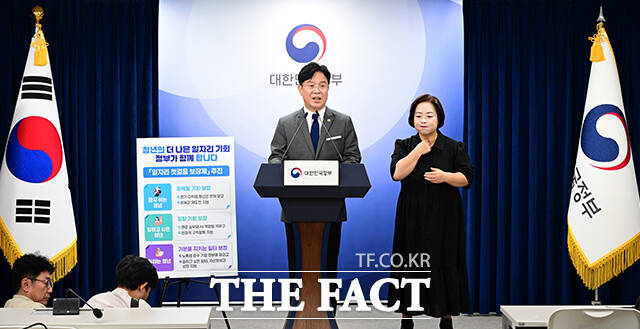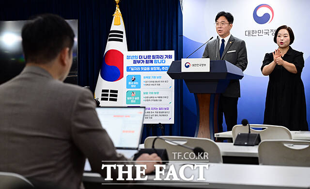 [더팩트ㅣ임영무 기자] 김영훈 고용노동부 장관이 10일 오후 서울 종로구 정부서울청사에서 청년 일자리 정책 '일자리 첫걸음 보장제'와 관련해 브리핑하고 있다.