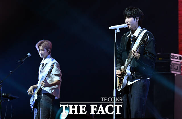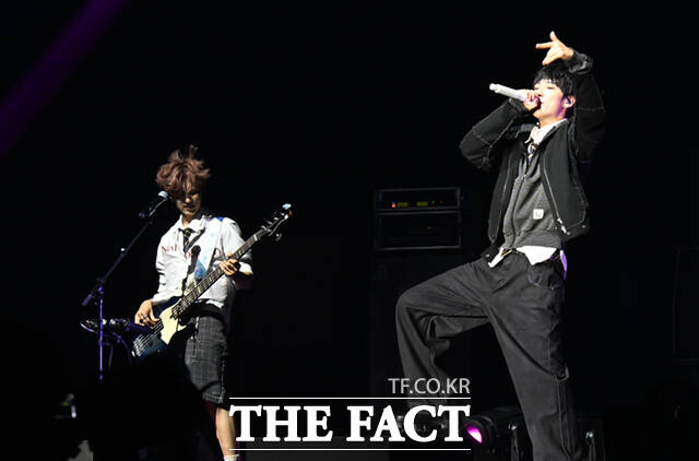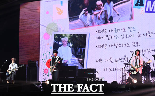 [더팩트ㅣ이새롬 기자] FNC엔터테인먼트에서 10년 만에 선보인 신인 밴드 에이엠피(AxMxP)가 10일 서울 송파구 올림픽로 올림픽공원 올림픽홀에서 열린 데뷔 쇼케이스에서 트리플 타이틀곡 무대를 선보이고 있다.