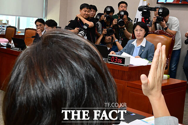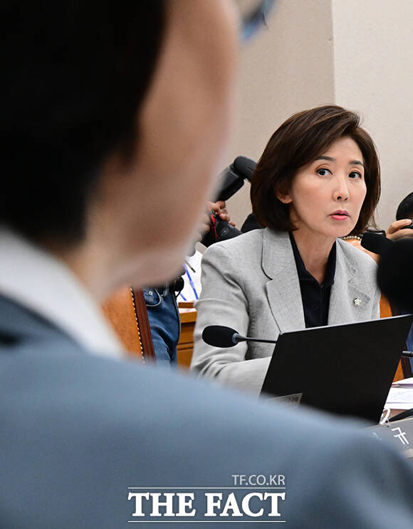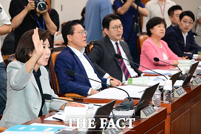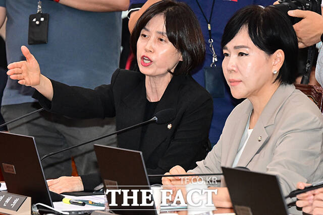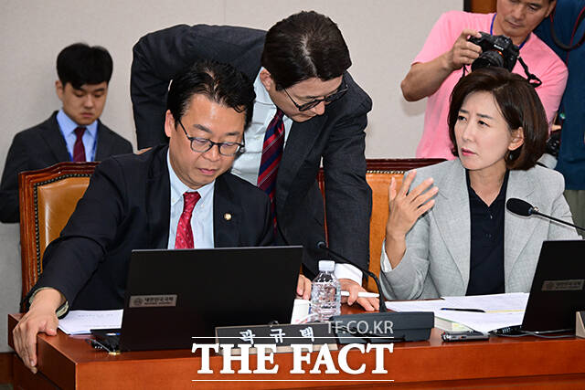 [더팩트ㅣ국회=남윤호 기자] 10일 오후 서울 여의도 국회 법제사법위원회에서 열린 전체회의에서 곽규택, 나경원 국민의힘 의원이 추미애 위원장의 회의 운영에 반발하고 있다.