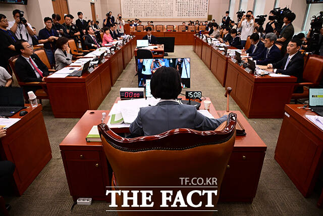 민주당 의원들은 국민의힘 소속 의원들이 안건조정위 진행 절차에 불참한 점을 비판하며 관봉권 띠지 분실 사건 등을 입법청문회에서 논의해야 한다고 주장했다. 국민의힘 측은 민주당이 위법한 안건조정위를 거쳤다며 야당 법사위 간사 선임 안건을 상정해달라고 요구했다.