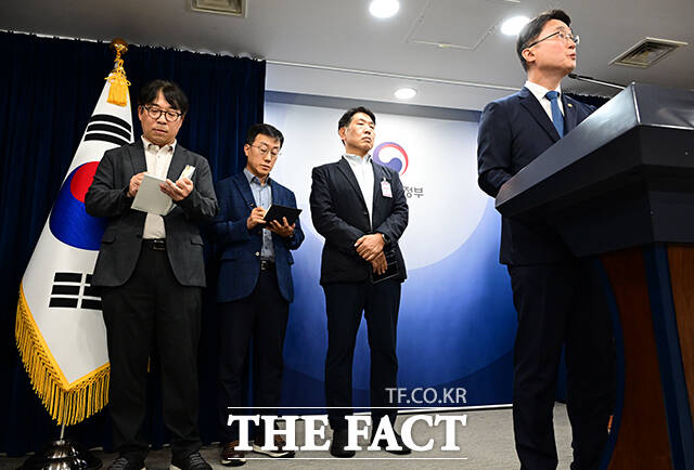 [더팩트ㅣ임영무 기자] 류제명 과학기술정보통신부 제2차관이 10일 오후 서울 종로구 정부서울청사에서 KT 고객 무단 소액결제 침해사고와 관련해 브리핑하는 가운데 KT 관계자들이 류 차관의 발언을 메모하고 있다.