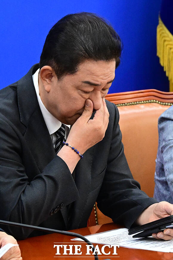문진석 더불어민주당 원내수석부대표가 11일 오전 서울 여의도 국회에서 열린 정책조정회의에서 김건희 특검 수정안의 '파견공무원수 100명을 120으로 수정하고 있다. /국회=남윤호 기자
