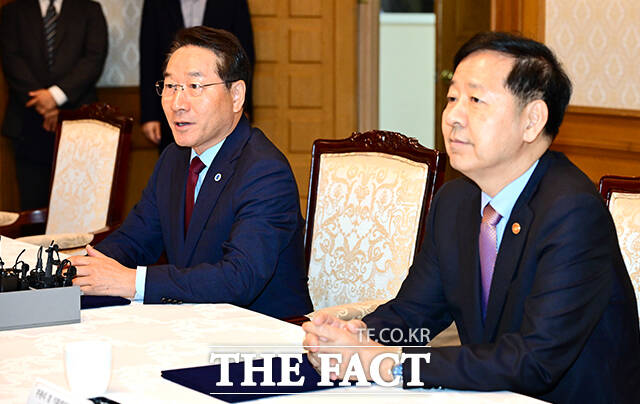 [더팩트ㅣ임영무 기자] 유정복 인천광역시장(왼쪽)이 11일 오전 서울 종로구 정부서울청사에서 2025 APEC 재무·구조개혁장관회의의 성공적 개최를 위한 기획재정부-인천광역시 업무협약에 참석해 발언을 하고 있다.