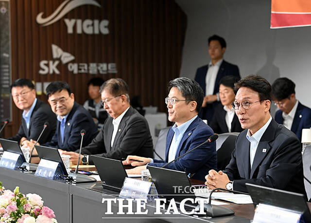 [더팩트ㅣ임영무 기자] 김민석 국무총리가 11일 오전 경기 용인시 처인구 반도체 클러스터에서 열린 현장 간담회에 참석해 모두발언을 하고 있다.