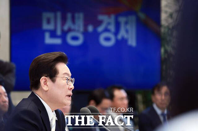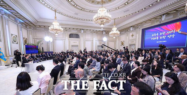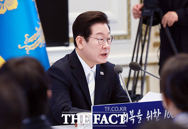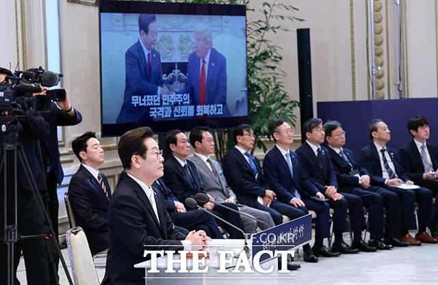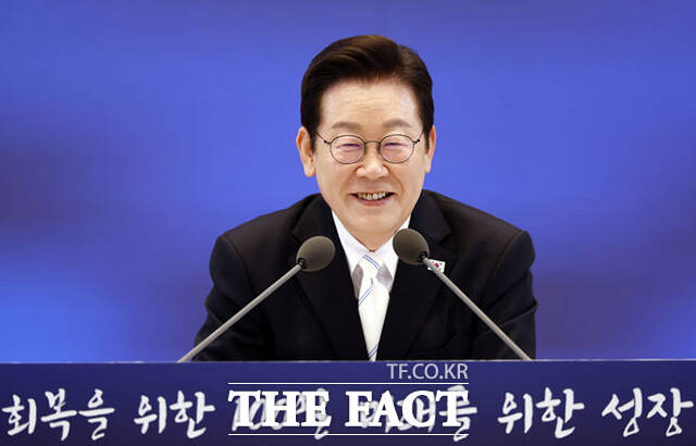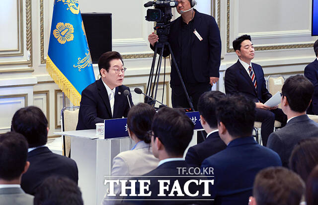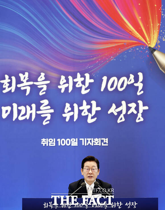 [더팩트ㅣ서예원 기자] 이재명 대통령이 11일 오전 청와대 영빈관에서 열린 취임 100일 기자회견 '회복을 위한 100일, 미래를 위한 성장'에서 모두발언을 하고 있다.
