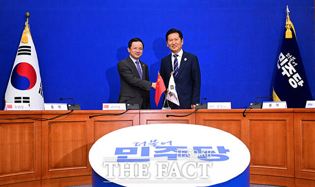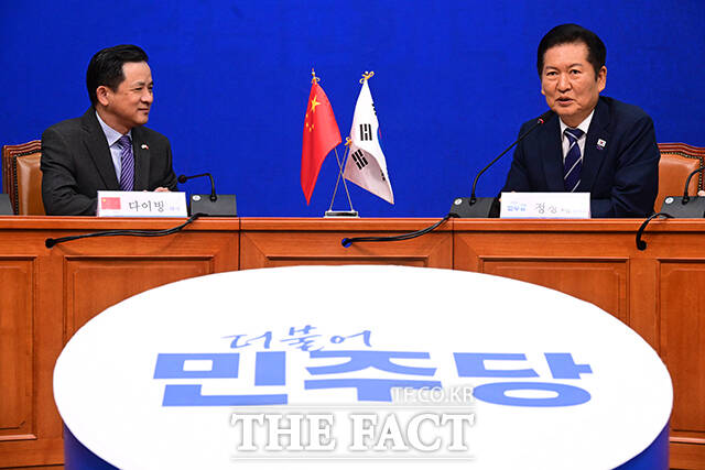 정청래 대표는 이날 다이빙 주한중국대사를 만나 전략적 협력·동반자 관계를 한층 더 발전시켜 나가자고 제안했다.