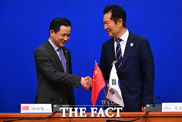 정 대표는 "한국과 중국은 수천 년 교류와 우정을 이어온 동반자이자 전략적 협력 파트너"라며 "수교 33년 동안 쌓아온 양국 간의 신뢰는 동북아의 평화와 안정, 번영에 크게 기여해 왔다"고 했다.