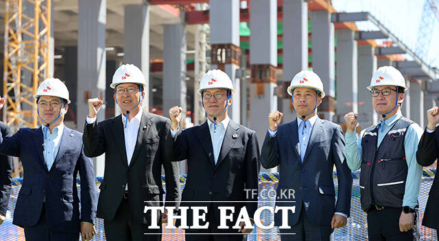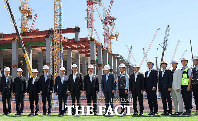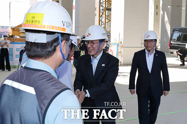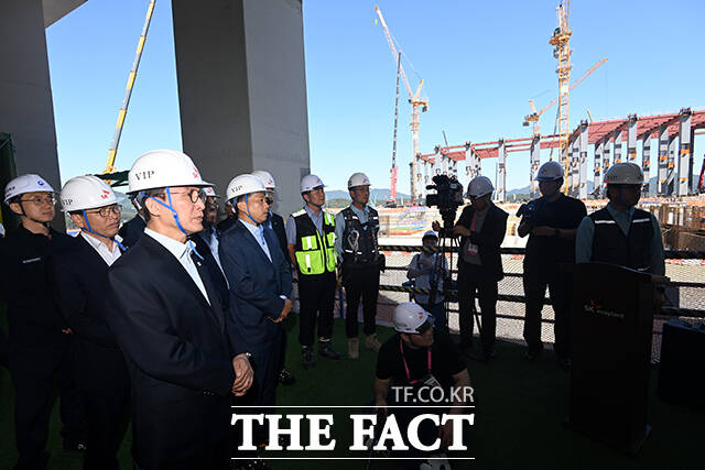 [더팩트ㅣ임영무 기자] 김민석 국무총리가 11일 오전 경기 용인시 처인구 반도체 클러스터 공사현장을 찾아 현황 보고를 받고 관계자들을 격려하고 있다.