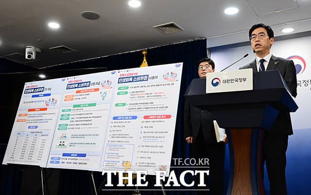 [더팩트ㅣ임영무 기자] 김민재 행정안전부 차관이 12일 오전 서울 종로구 정부서울청사에서 제2차 민생회복 소비쿠폰 지급방안과 관련해 브리핑을 하고 있다.