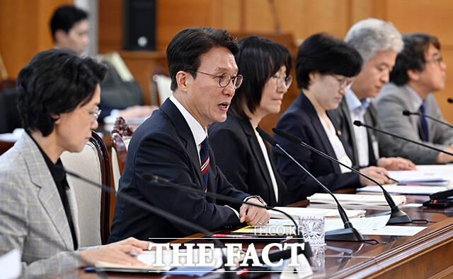 [더팩트ㅣ임영무 기자] 김민석 국무총리(왼쪽 두 번째)가 12일 오전 서울 종로구 정부서울청사에서 열린 자살예방정책위원회 회의에 참석해 모두발언을 하고 있다.