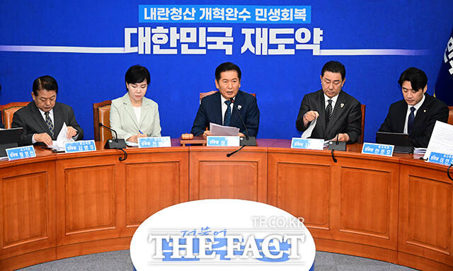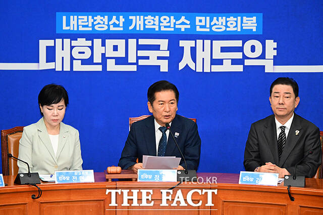 정청래 대표는 이날 모두발언에서 "어제 3대 특검법 개정안이 민주당 주도로 국회 본회의를 통과했다. 특검의 수사 기간을 연장하고 수사 대상과 인력을 증원하는 주된 내용은 법제사법위원회 원안대로 유지됐다"며 "당장은 우여곡절이 많은 것처럼 보여도 결국 역사는 하나의 큰 물줄기로 흘러간다"고 말했다.