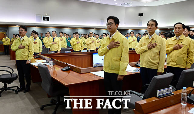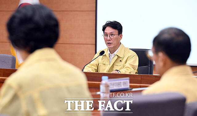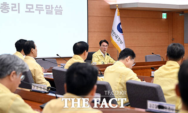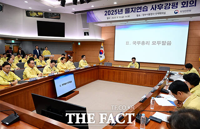 [더팩트ㅣ임영무 기자] 김민석 국무총리가 12일 오후 서울 종로구 정부서울청사 별관에서 열린 을지연습 사후강평에 참석해 모두발언을 하고 있다.