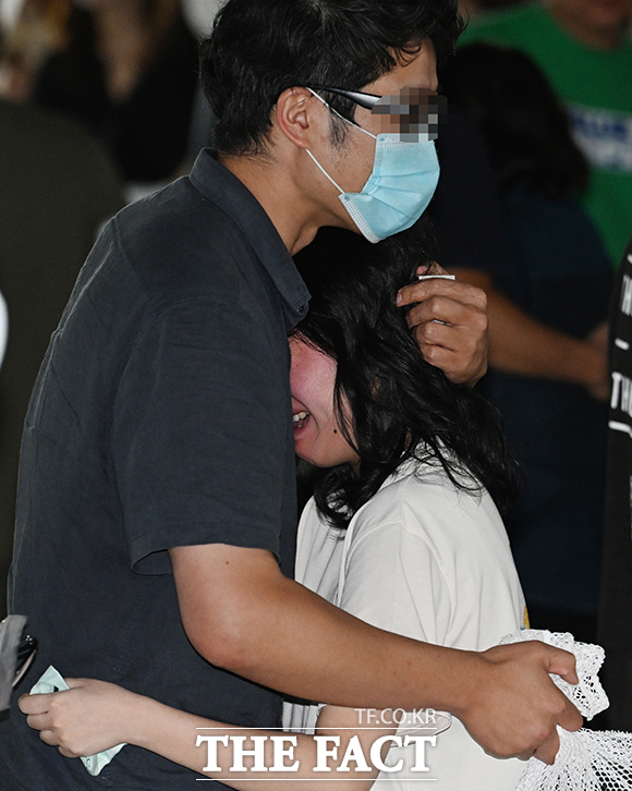 [더팩트ㅣ인천국제공항=박헌우 기자] 미국 조지아주 현대차그룹-LG에너지솔루션 배터리 합작 공장 건설 현장에서 구금됐다가 석방된 한국인 노동자가 12일 오후 인천국제공항을 통해 귀국해 가족과 포옹을 하고 있다.