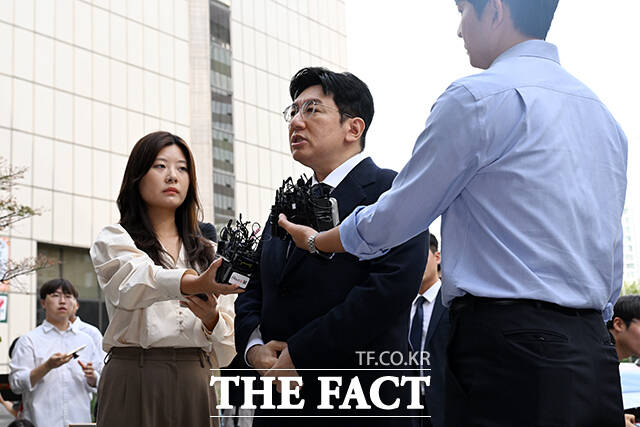 [더팩트ㅣ서예원 기자] 자본시장법상 부정거래행위 금지 위반 혐의를 받는 방시혁 하이브 의장이 15일 오전 서울 마포구 서울경찰청 금융범죄수사대에 출석하며 입장을 밝히고 있다.