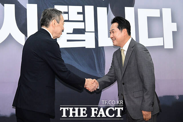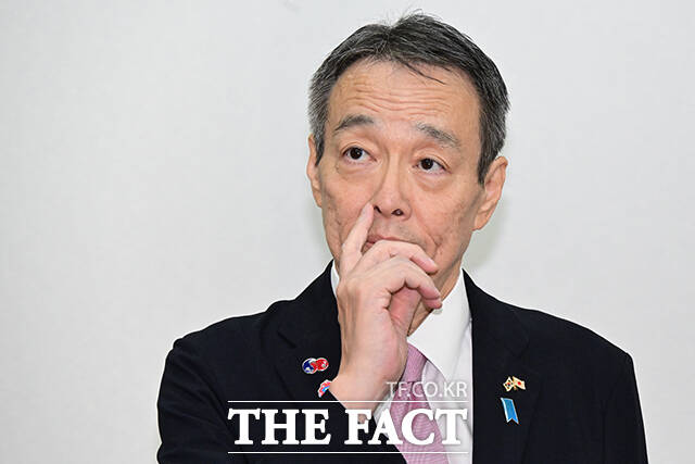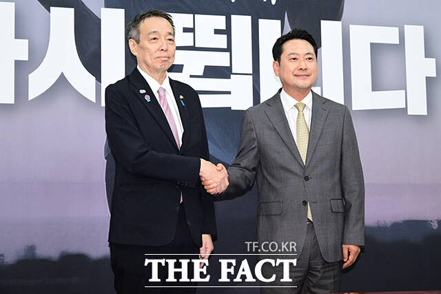 [더팩트ㅣ국회=남윤호 기자] 장동혁 국민의힘 대표가 15일 오후 서울 여의도 국회에서 미즈시마 고이치 주한일본대사를 만나 인사말을 하고 있다.