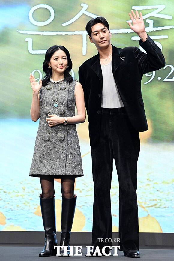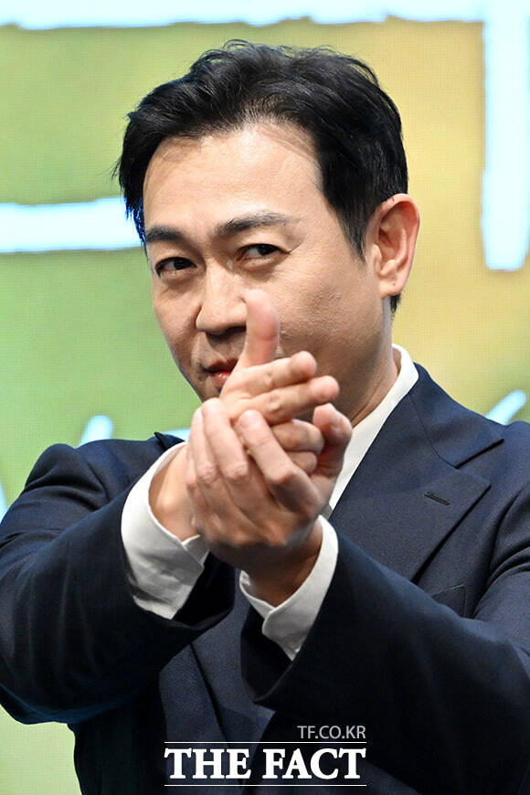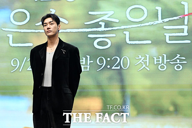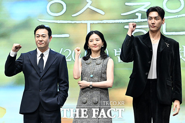 [더팩트ㅣ남용희 기자] 배우 박용우와 이영애, 김영광(왼쪽부터)이 16일 오후 서울 구로구 신도림 디큐브시티 더 세인트 그랜드볼룸에서 열린 KBS2 토일 미니시리즈 '은수 좋은 날' 제작발표회에 참석해 포즈를 취하고 있다.