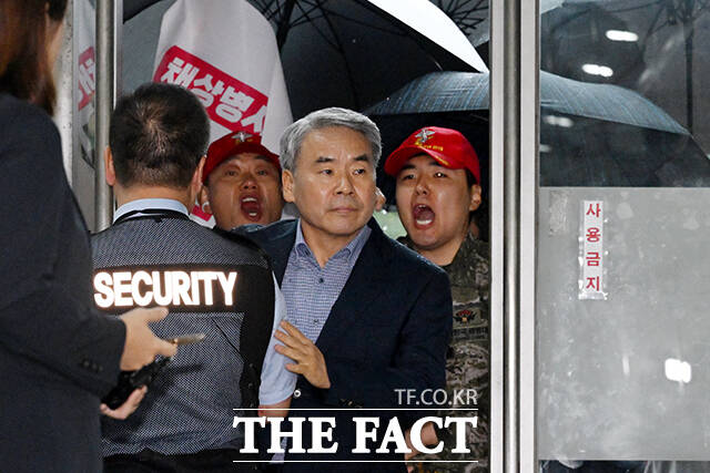 [더팩트ㅣ서예원 기자] 이종섭 전 국방부 장관이 17일 오전 서울 서초구 한샘빌딩에 마련된 순직 해병 특검 사무실에 참고인 신분으로 출석하고 있다.