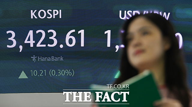 이날 코스피는 미국 중앙은행인 연방준비제도(Fed)의 기준금리 인하로 전 거래일(3413.40) 대비 0.57%(19.37포인트) 오른 3432.77로 출발했다.