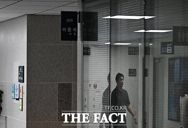 [더팩트ㅣ국회=배정한 기자] 무소속 이춘석 의원의 주식 차명거래 의혹을 수사하는 금융범죄수사대 관계자들이 18일 오전 서울 여의도 국회 의원회관 이 의원 사무실을 압수수색하고 있다.