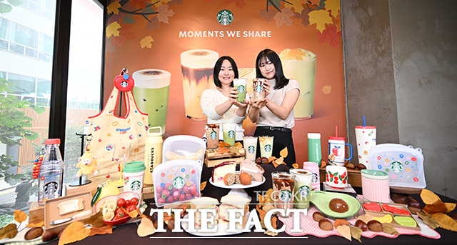 [더팩트ㅣ박헌우 기자] 18일 오전 서울 중구 스타벅스 한국프레스센터점에서 '블랙 글레이즈드 라떼' 출시 행사가 열린 가운데 모델들이 음료와 푸드, 굿즈 등을 선보이고 있다.