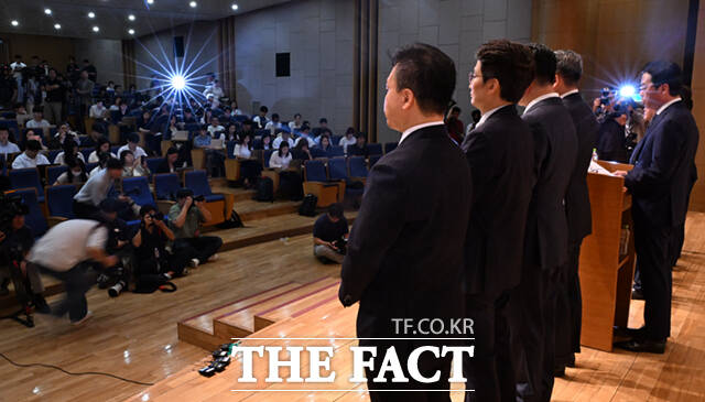 [더팩트ㅣ이새롬 기자] 960만 여명의 회원을 보유한 롯데카드의 해킹 사고가 발생한 가운데, 조좌진 롯데카드 대표이사가 18일 오후 서울 중구 부영태평빌딩에서 사이버 침해 사고에 대한 사과 및 고객 보호 조치 등과 관련해 입장을 밝히고 있다.