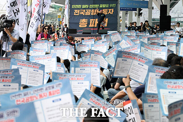 이날 전국공항노동자연대(공공운수노조 인천공항지역지부, 전국공항노동조합)는 이날 '안전한 일터·안전한 공항'을 외치며 전국 15개 공항(인천과 김포, 양양, 청주, 군산, 원주, 제주, 김해, 대구, 광주, 무안, 여수, 울산, 포항경주)과 항공기술훈련원, 한국공항공사 항로시설본부에서 일하는 공항의 파업을 진행했다.