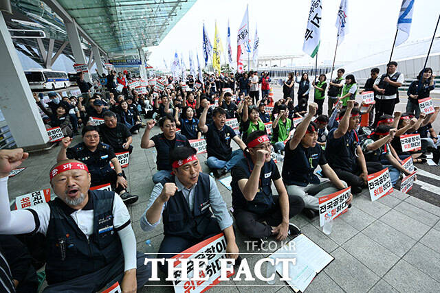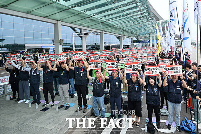 추석 황금연휴 앞두고 파업 돌입한 공항노동자들 [TF사진관]