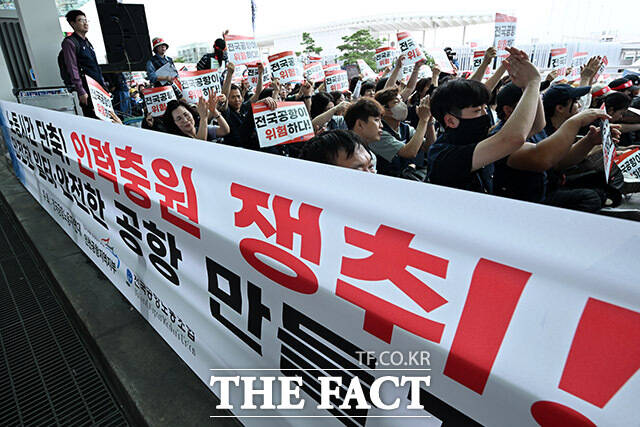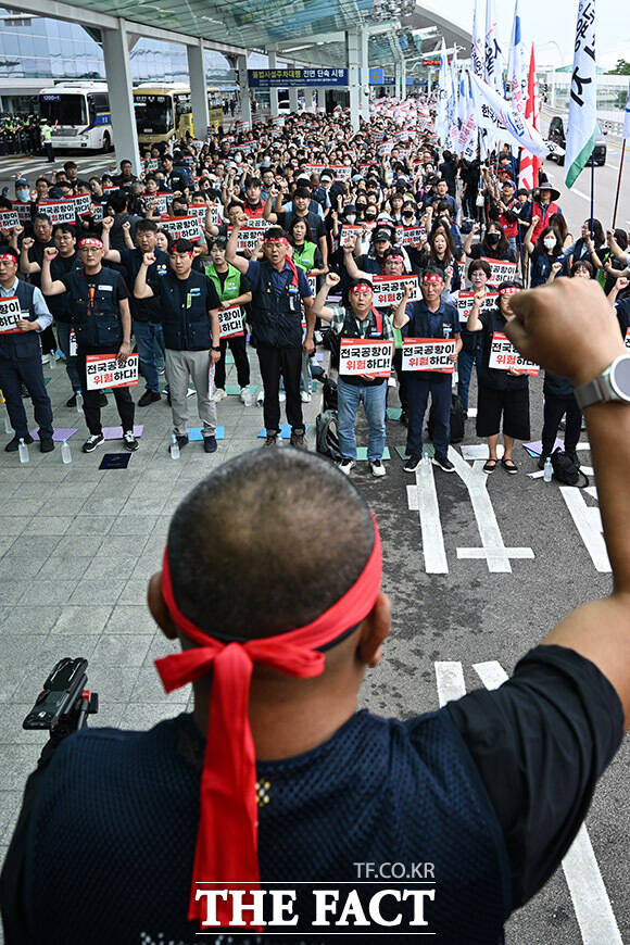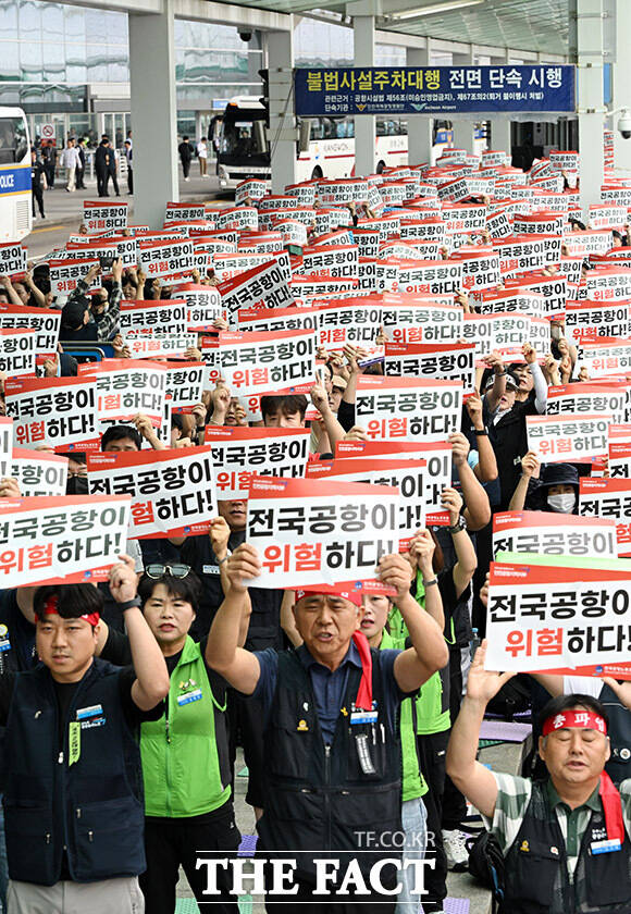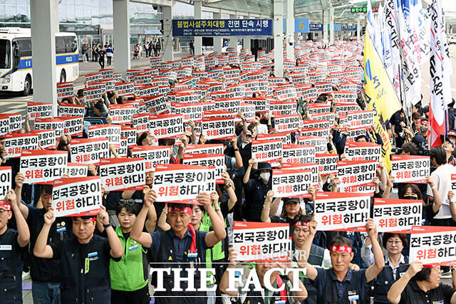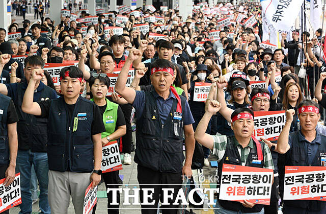 '전국 공항이 위험하다!' 추석 황금연휴 앞두고 총파업 진행하는 공항노동자들.